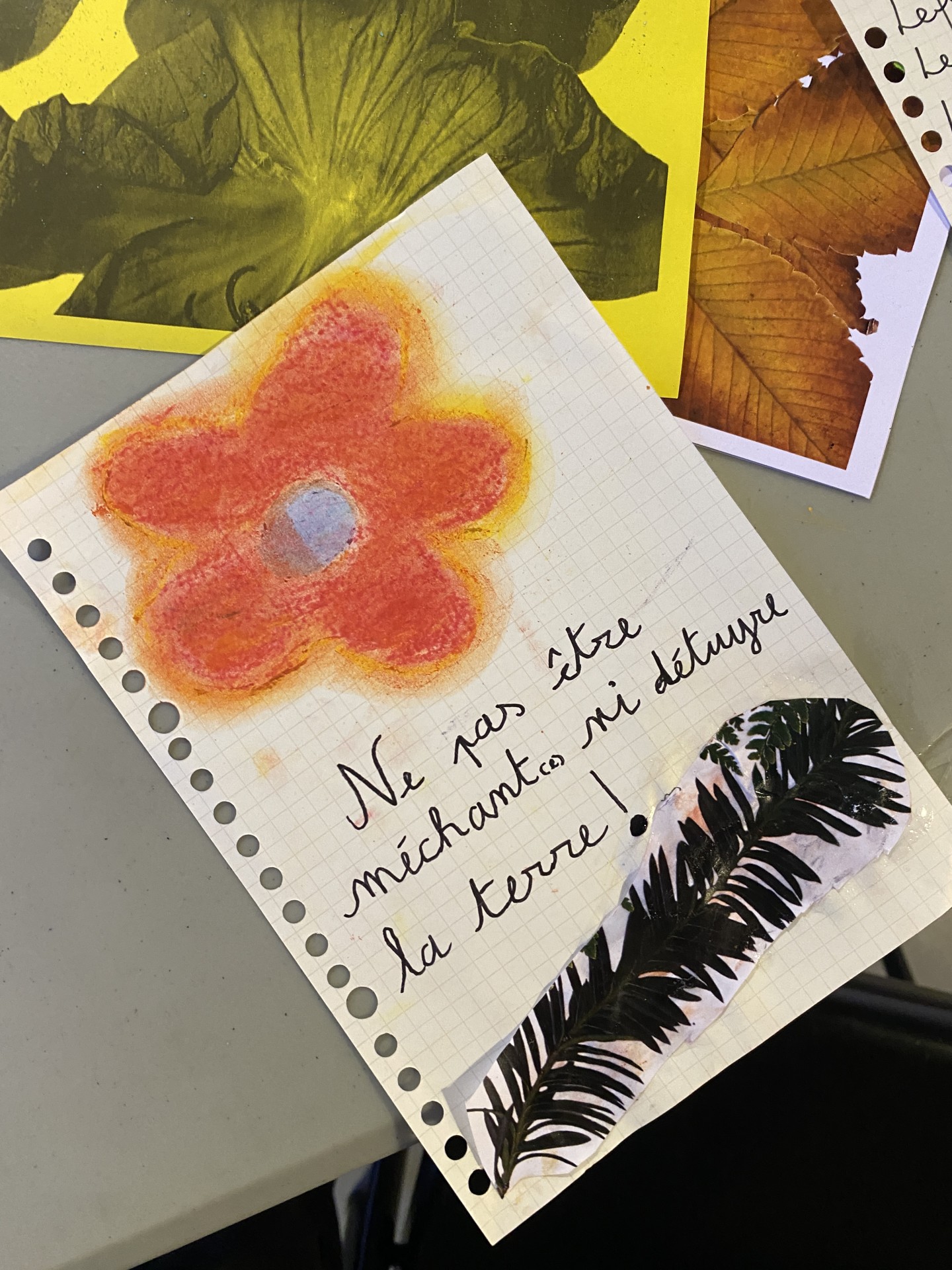 Partager ces documents appartenant aux archives des trois autrices et voir comment ils nourrissent l’imagination des élèves est un point central du projet. Comme l’est la volonté de présenter leurs réalisations dans l’exposition, non comme des œuvres, mais comme des éléments confirmant que le partage des expériences, la générosité d’un engagement intellectuel, la nécessité d’une pédagogie émancipée contrant le racisme, le sexisme, l’homophobie et les précarités sociales ou culturelles sont au cœur d’une confiance qui doit être accordée à la jeunesse dans toutes ses différences. En cela, l’encadrement exceptionnel des professeur·es qui ont mené avec leurs élèves ces ateliers, résonne dans les résultats des travaux plastiques ou graphiques.