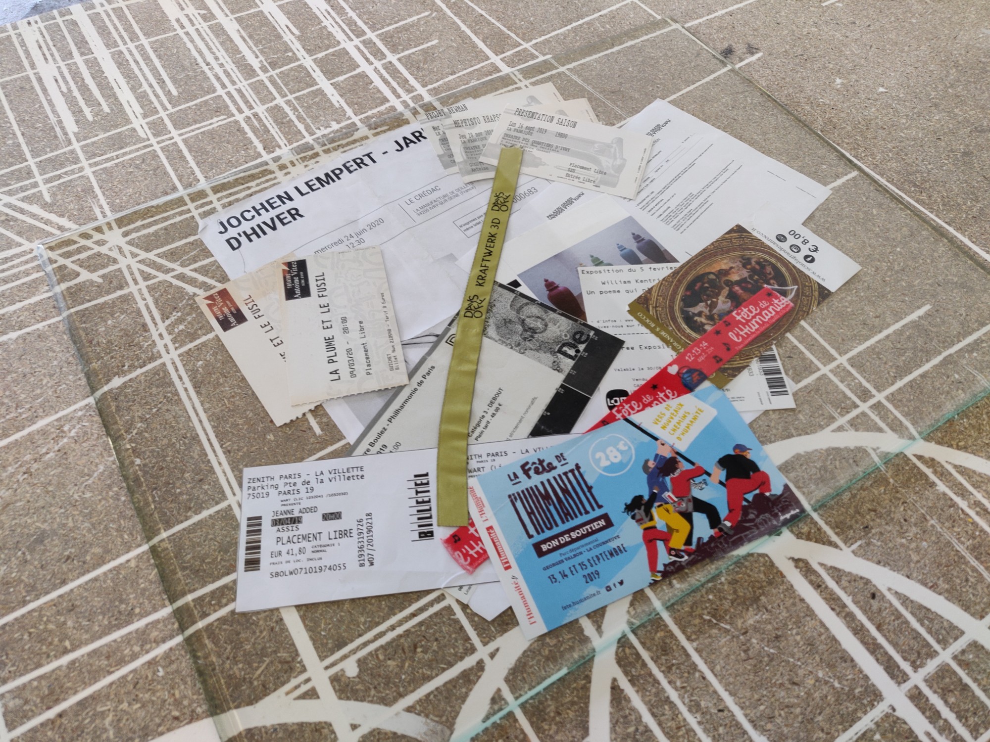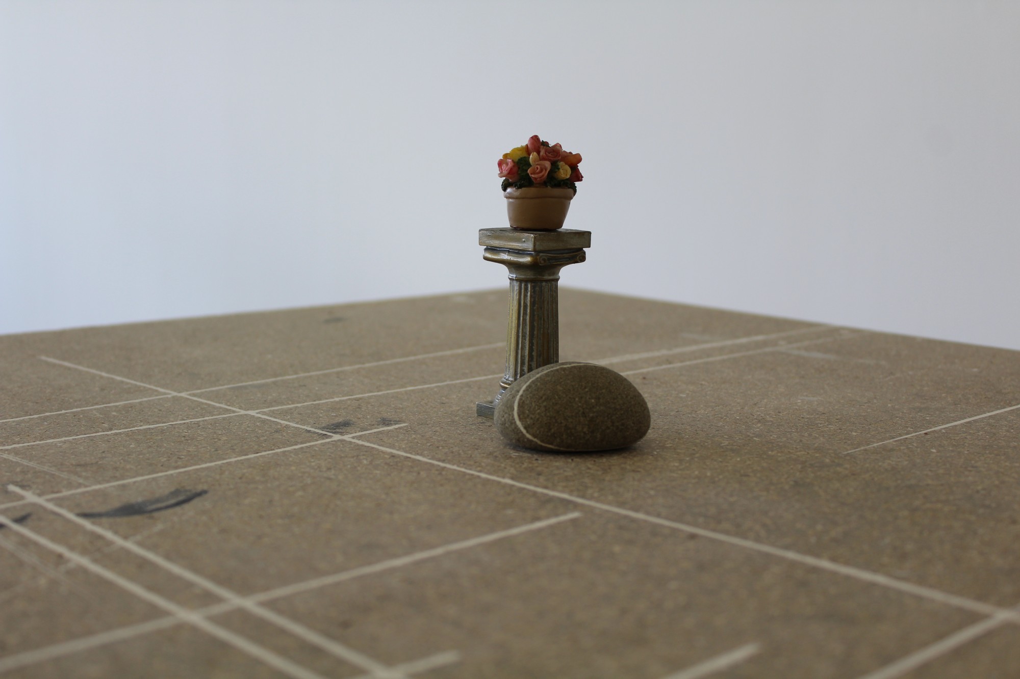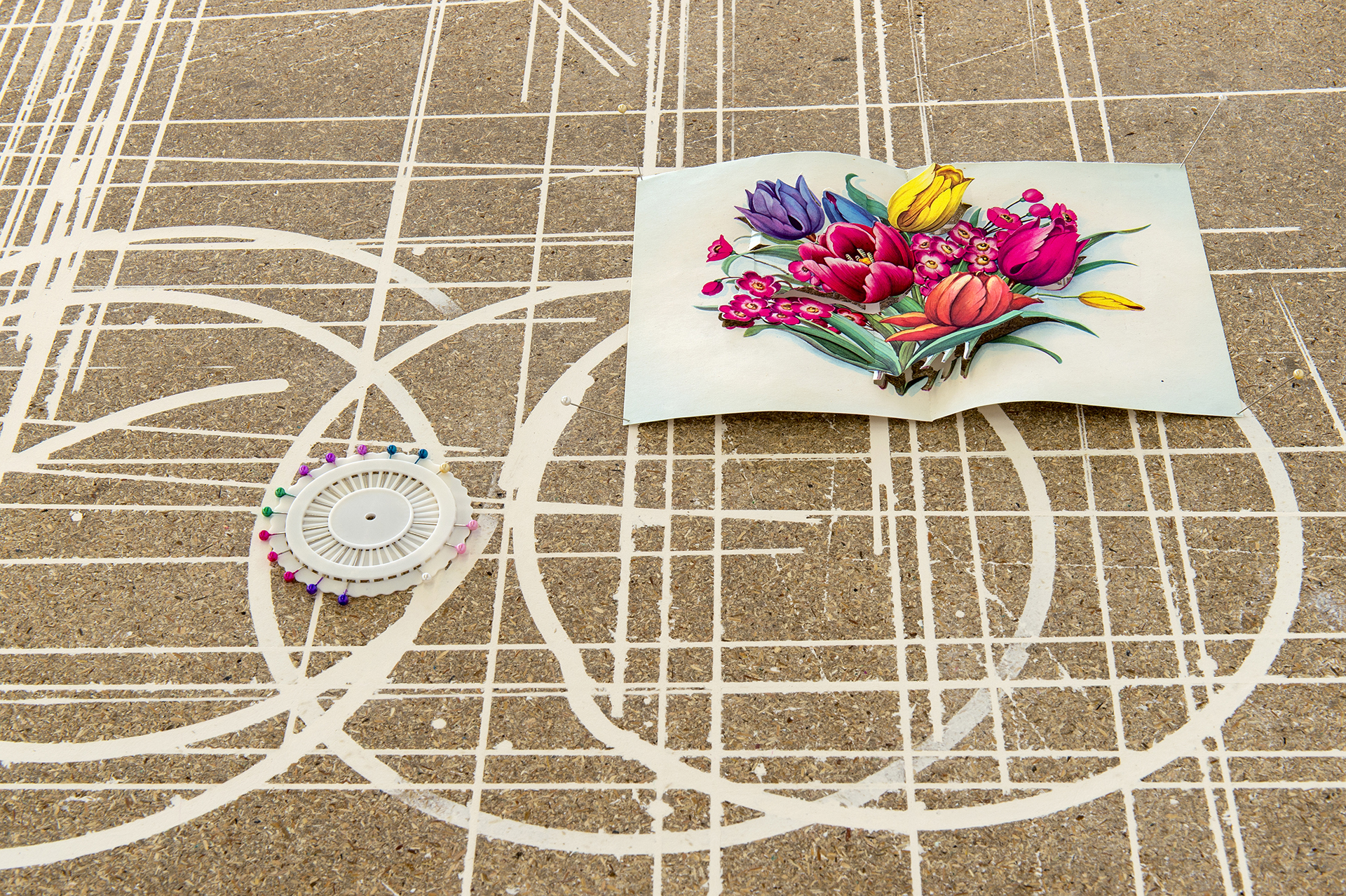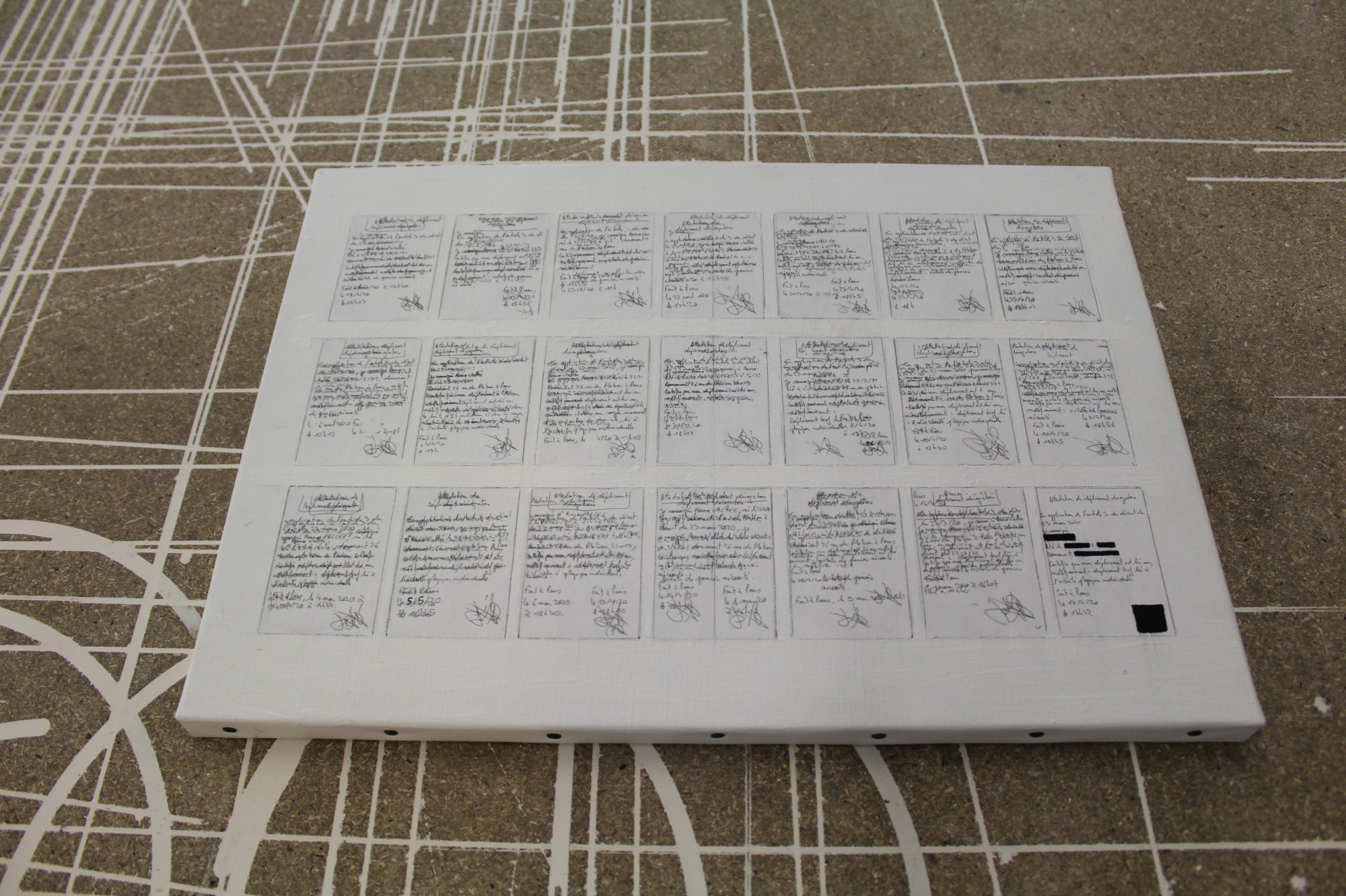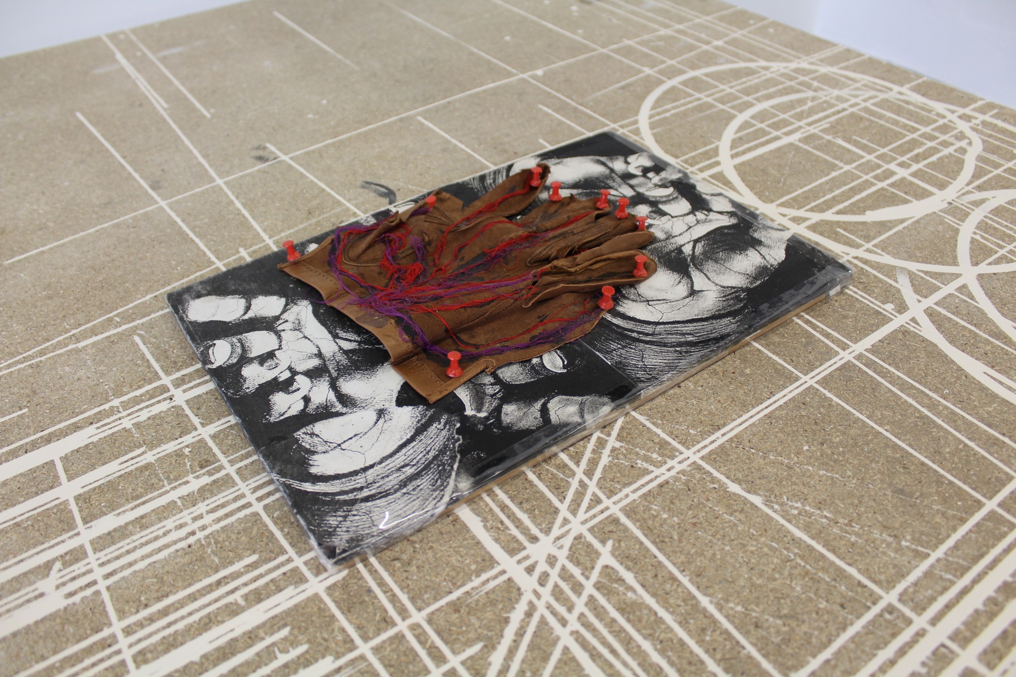 Située à mi-parcours de l’exposition, la table n°26 est un fragment du plateau de l’atelier-régie, lieu de production des œuvres et des réunions du Conseil d’administration du Crédac. Un établi sur lequel se discute le projet artistique et financier du centre d’art, une table des négociations avec nos partenaires. À travers ses nombreux martyrs, une archéologie du travail se révèle.