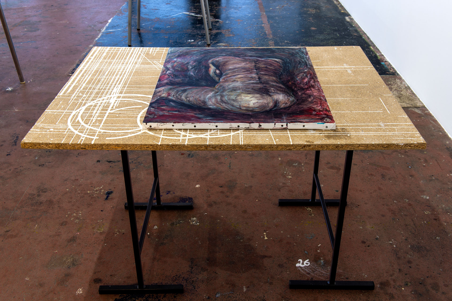 Proposition d’Antonio pour la Table des invité·e·s dans l’exposition collective La vie des Tables, septembre 2020 - mars 2021, Photo : Marc Domage