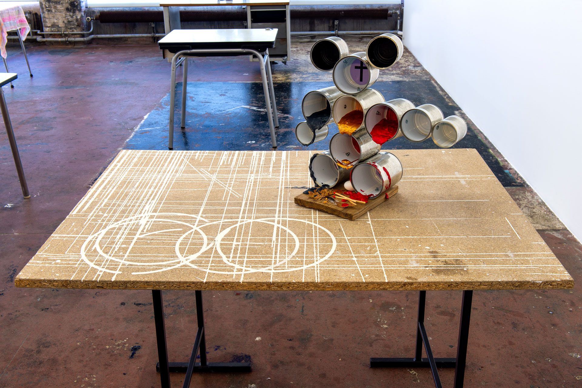 Proposition de Sabine Canivet pour la Table des invité·e·s dans l’exposition collective La vie des tables, septembre 2020 - mars 2021, Photo : Le Crédac