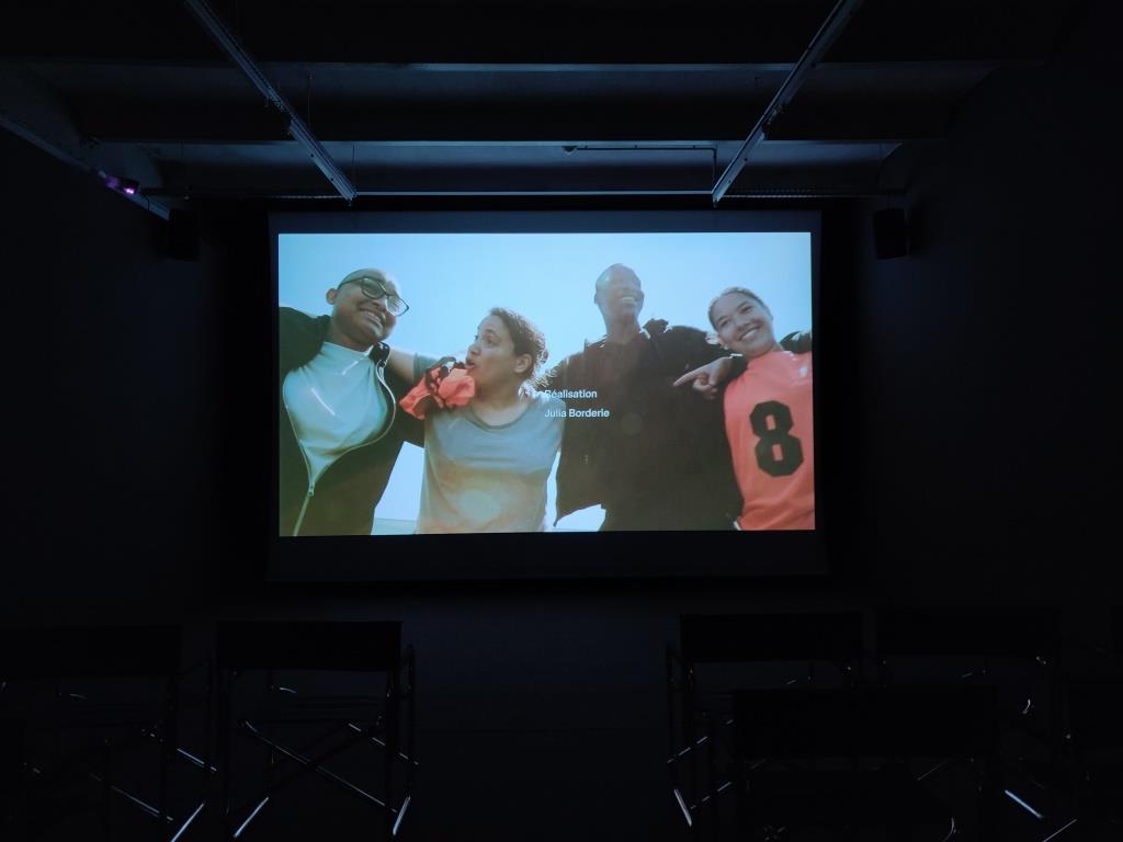 Hors-jeu est réalisé par Julia Borderie et les élèves de seconde professionnelle Métier de la relation client du lycée Robert Schuman à Charenton-le-Pont et la classe UPE2A du lycée François Arago à Villeneuve-Saint-Georges. Accompagné·es par l’artiste, les élèves et les enseignant·es analysent comment le sport reflète notre société et inventent un nouveau jeu plus inclusif et égalitaire, dont le but est de proposer une autre façon de s’exprimer et de concevoir la réussite.