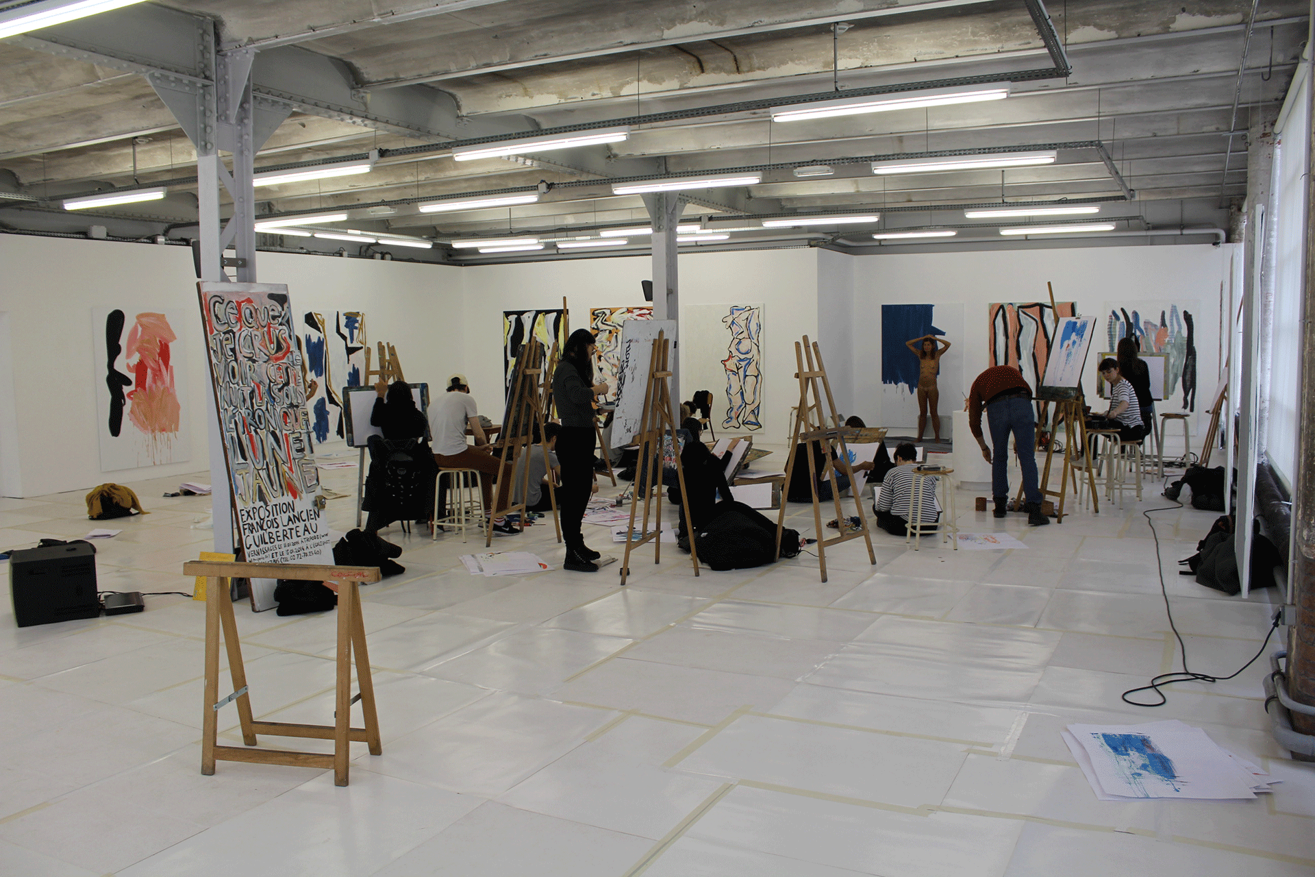 À la fois artiste et curateur, Corentin Canesson dédie son temps son temps à la peinture, à la musique et au commissariat d’expositions. Sa pratique obéit à des protocoles qu’il s’impose comme des obsessions ludiques. Il conçoit la peinture comme un acte spontané de plaisir, à travers lequel il convoque des références métissées à l’histoire de l’art des XXe et XXIe siècles. Pour cette exposition, il peint une série de toiles abstraites, à l’acrylique et à l’huile, sur un format donné (195 × 130 cm), évoquant les gestes d’Eugène Leroy, de Bram Van Velde ou de Philip Guston. Cette peinture décomplexée s’expérimente sur une bande-son, celle de son groupe The Night He Came Home. Enregistré pour l’exposition, l’album, dont chacune des pochettes a été peinte à la main par l’artiste, est diffusé en boucle dans la grande salle du Crédac, envisagée comme un plateau.